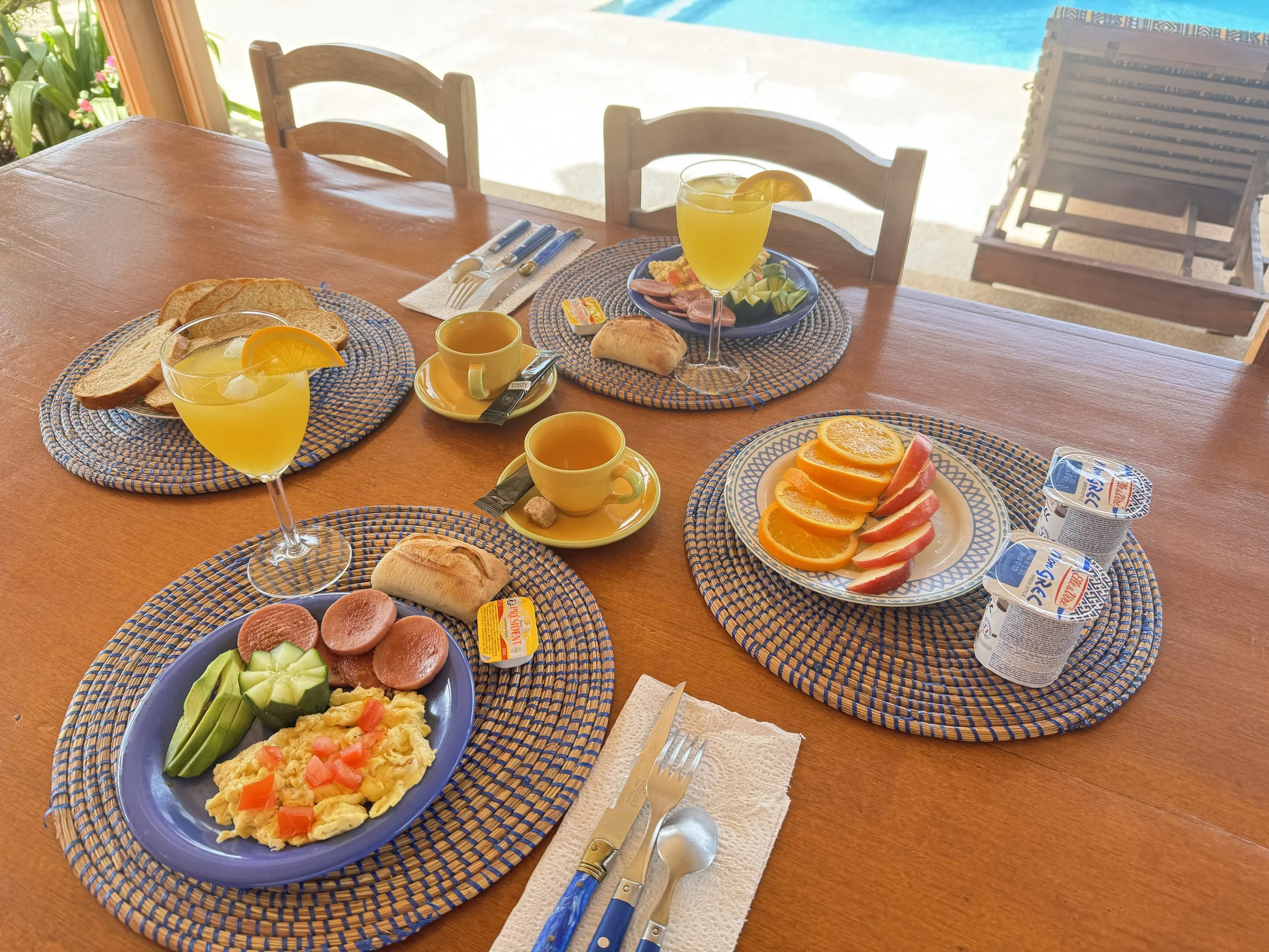 Un petit-déjeuner complet et savoureux vous est proposé sur demande, préparé avec soin par Ndeye, la cuisinière de la villa. Un moment gourmand et paisible pour bien commencer la journée.